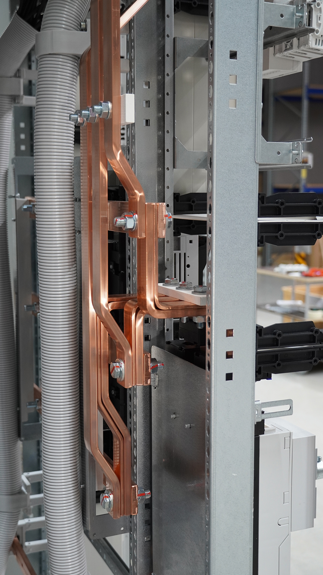 Das Anreih-Schranksystem VX25 von Rittal kann u.a. als Installationsstandverteiler mit ISV-Ausbaumodulen von Siemens oder Striebel&John mit bis zu 1250A geliefert werden. Gleichzeitig kann der Innenausbau mit speziellen Zubehörteilen zu einem Energiestandverteiler mit bis zu 3200A ausgebaut werden. Weiterhin umfasst das Portfolio von Rittal Wand und Standgehäuse in unterschiedlichsten Abmessungen für einen individuellen Innenausbau auf Montageplatten oder Profilschienensystemen.