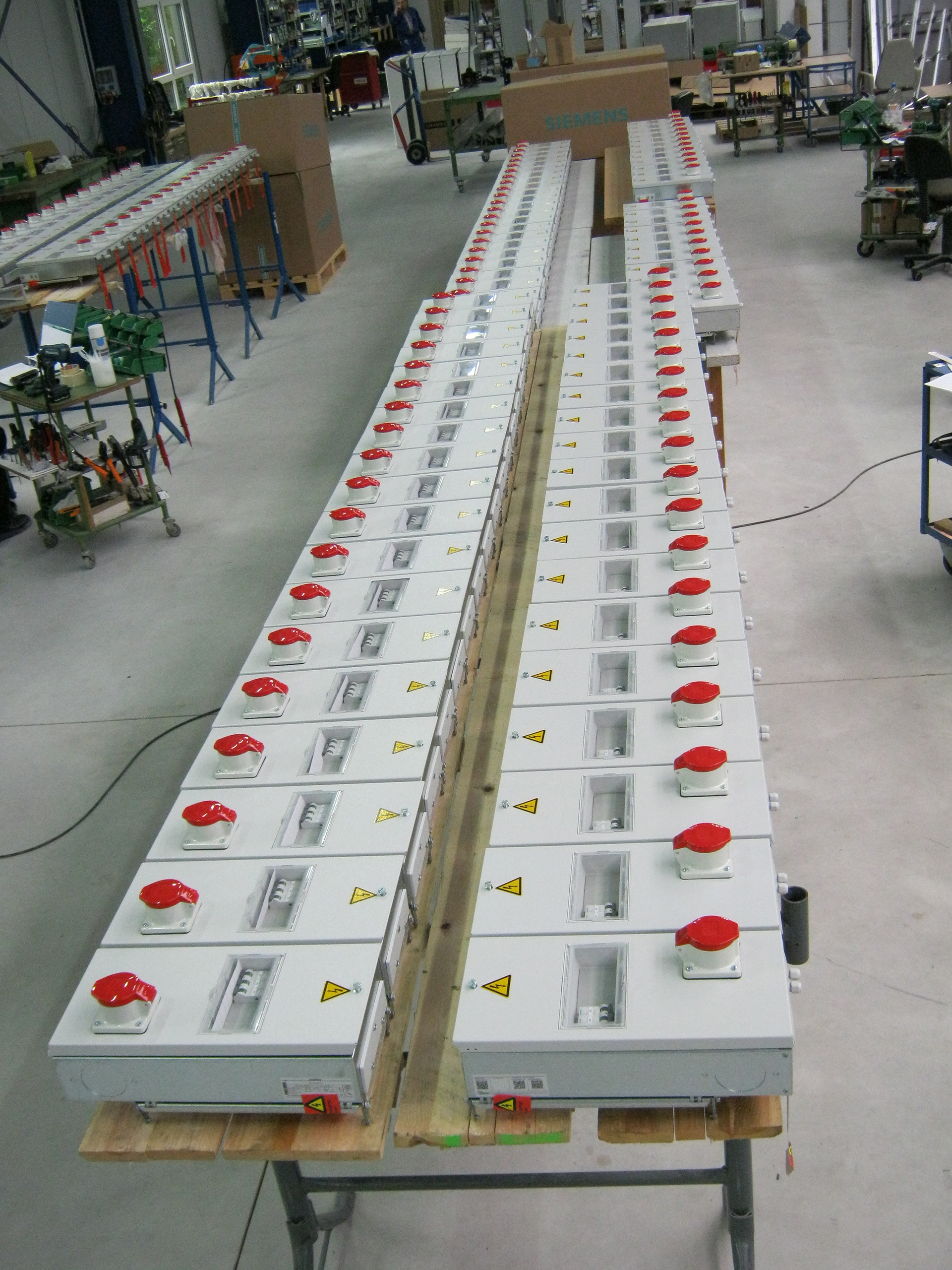 Mit Hilfe modernster Fertigungstechnologien fertigen wir die Schaltanlagen ausschließlich in unserer betriebseigenen Werkstatt. So bieten wir unseren Kunden vom Anfang bis zum Ende der Projektphase ein hohes Maß an Flexibilität. Jede Anlage durchläuft unser Prüffeld zur Qualitätsprüfung. Dies gewährleistet die hohe Qualität unserer Produkte. Die anschlussfertigen und geprüften Produkte sind Installationsverteiler für die Gebäudeinfrastruktur.